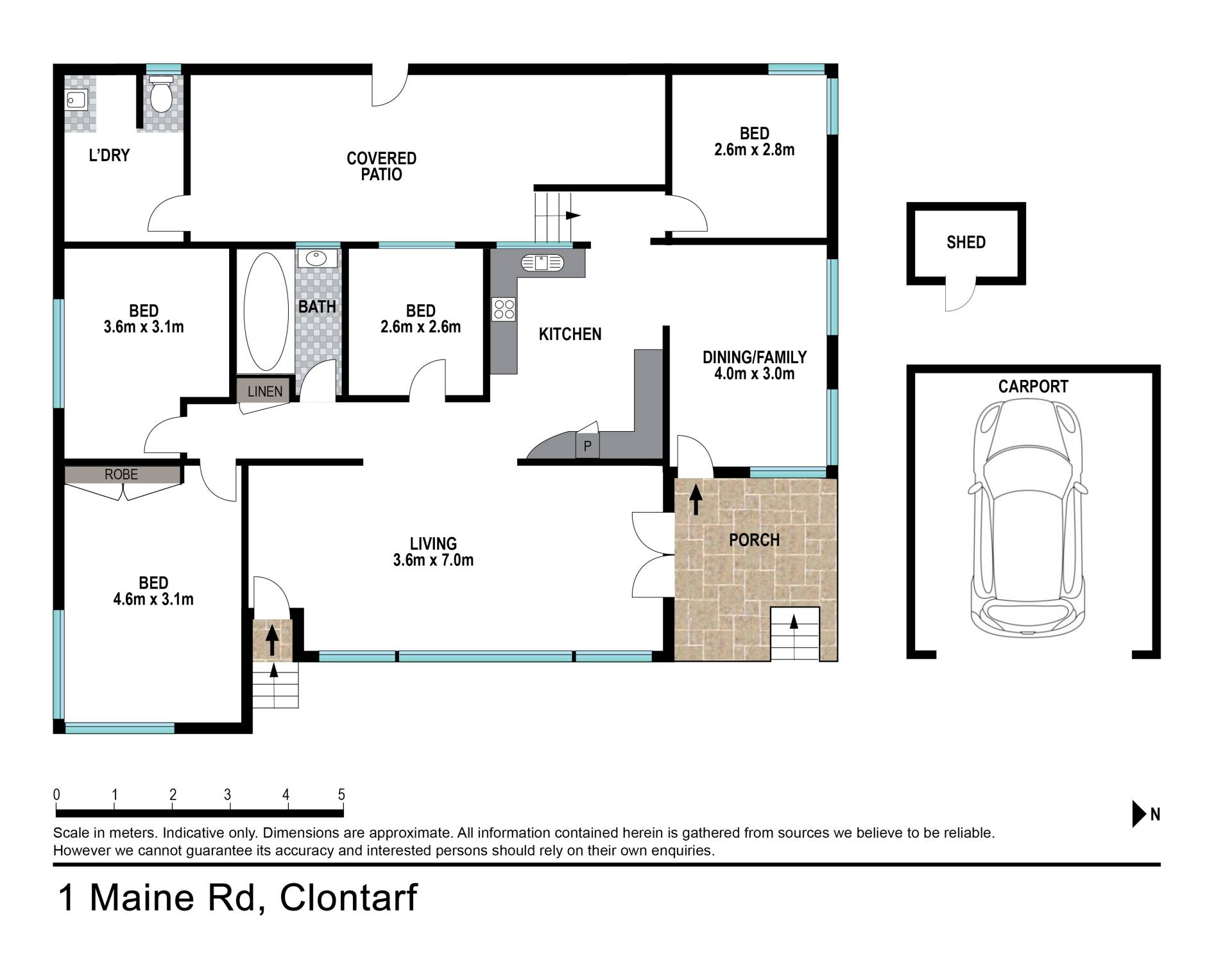 1 Maine Road Clontarf is certainly a renovator’s opportunity with an original retro kitchen with separate dining area and veranda off it. There is an area to create an office or reconfigure this to an extra bedroom. The enclosed area out the back contains an sunroom area leading to the laundry room with an extra toilet.