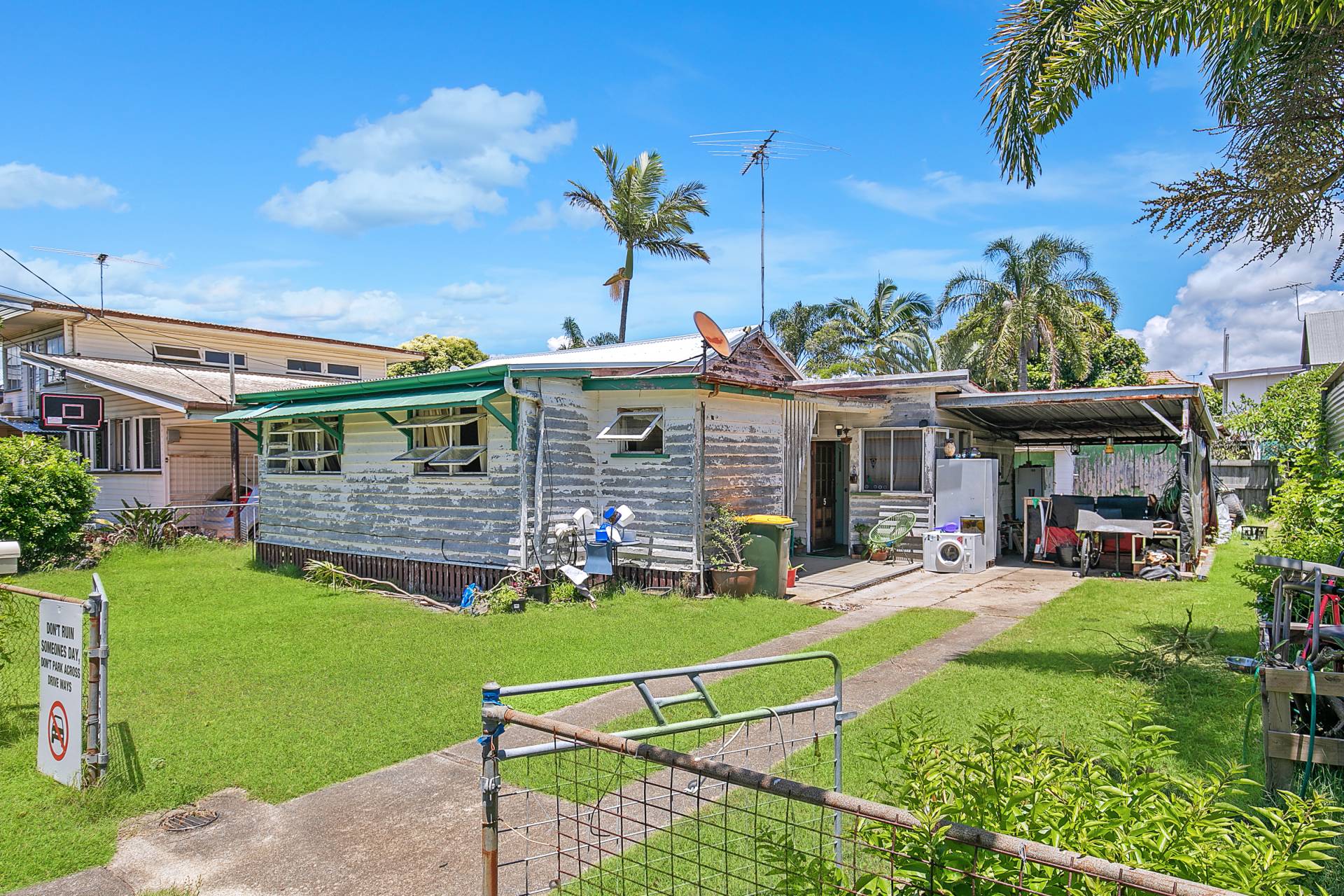 No 5 Desperately needing an overall or bring your excavator to tear this old girl down. The land area is 506m2 with a 16.1meter frontage, left depth of 34.6 and right depth of 26.9metres and the rear boundary of 17.9 meters. The current home is made of weatherboard with and Iron roof with 1 bedroom and garaging.