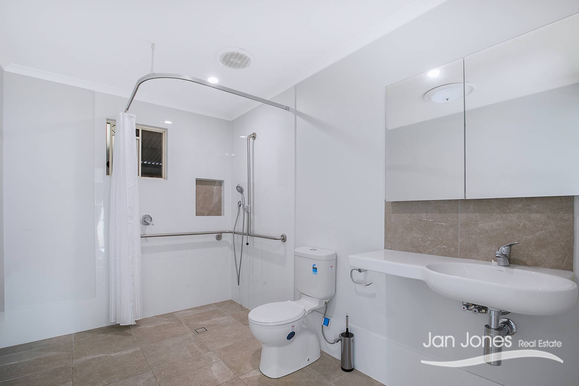 The bathroom has been recently updated to provide access for Wheelchair or someone that requires extra needs. This is combined with your vanity and toilet.