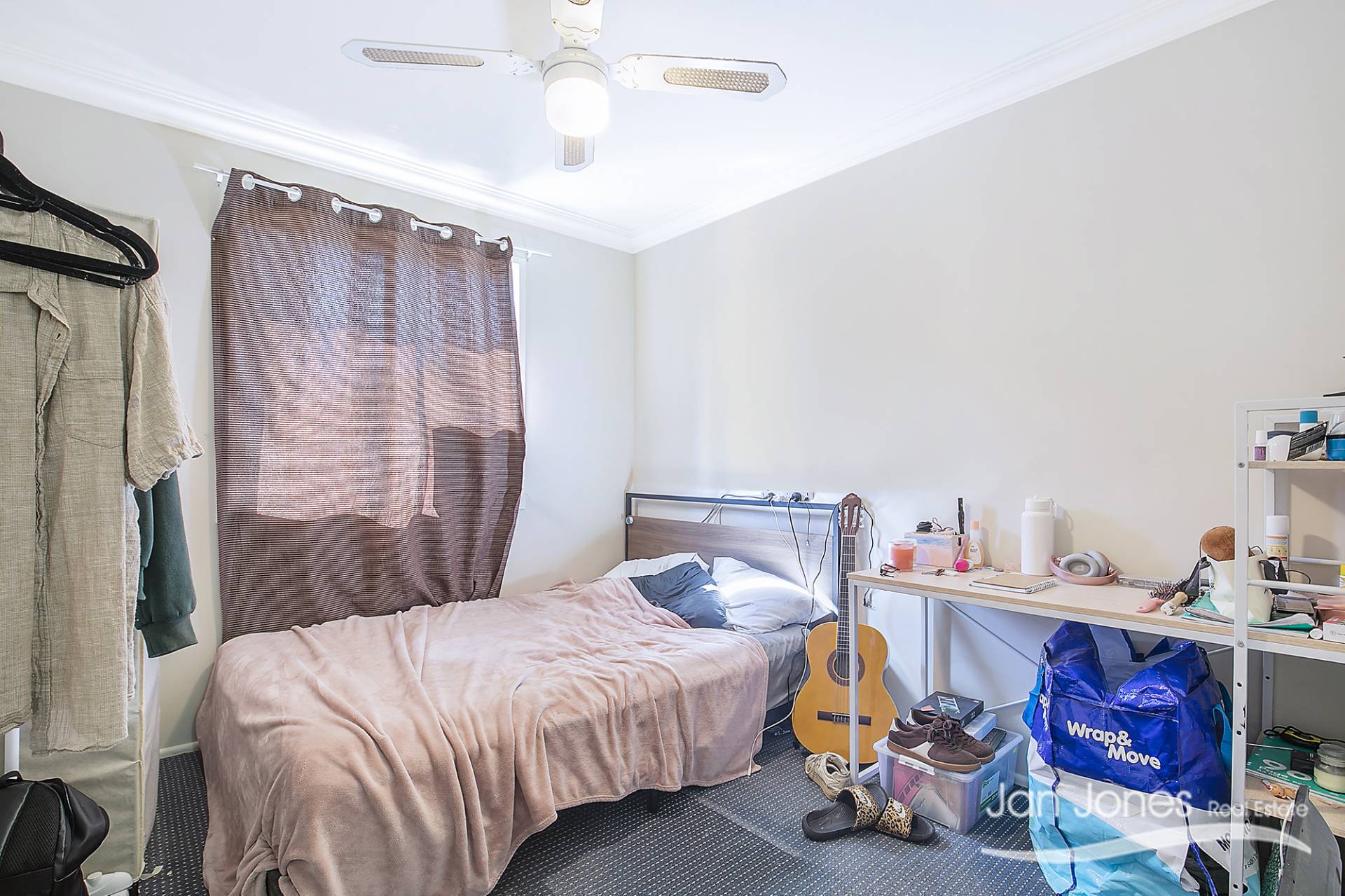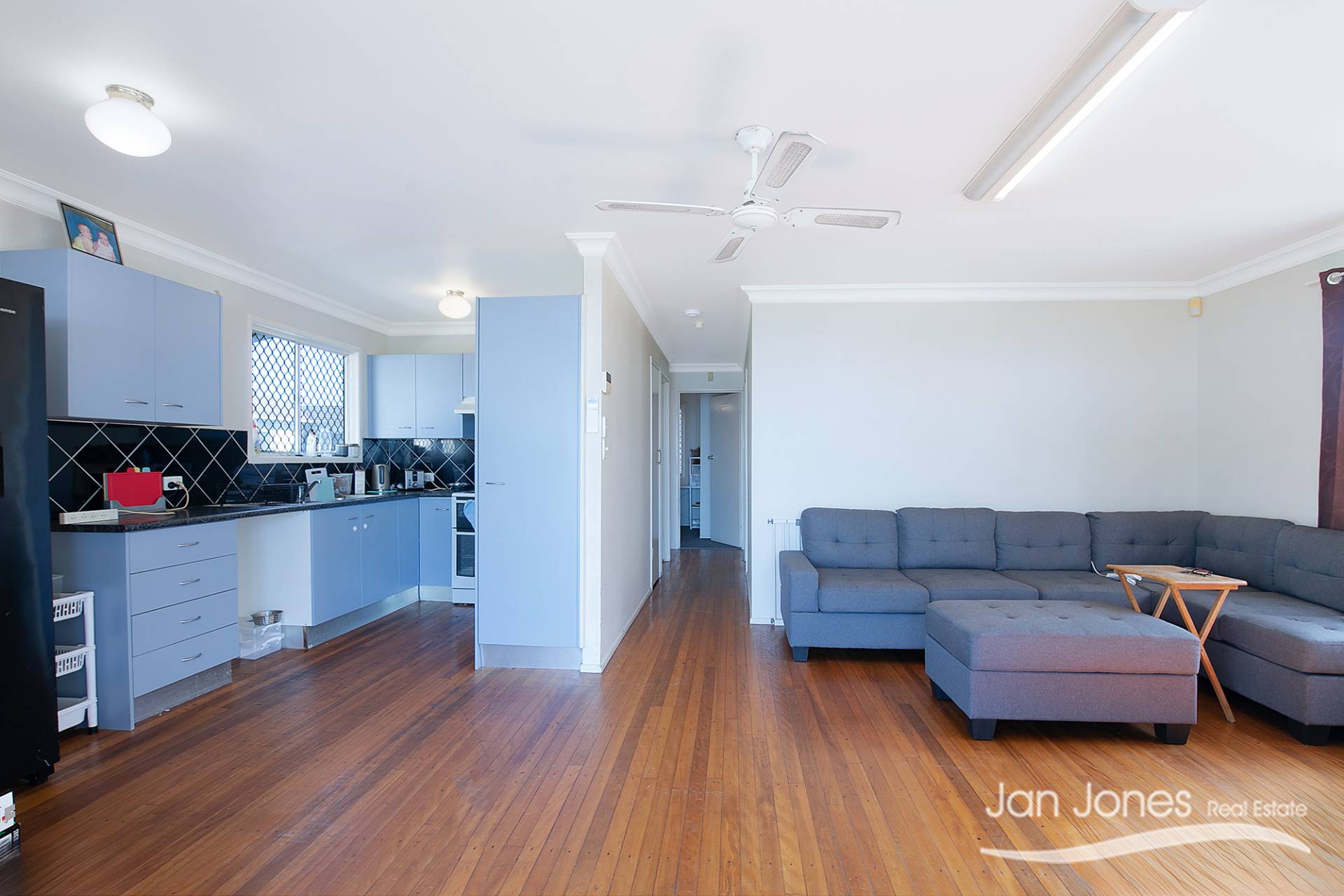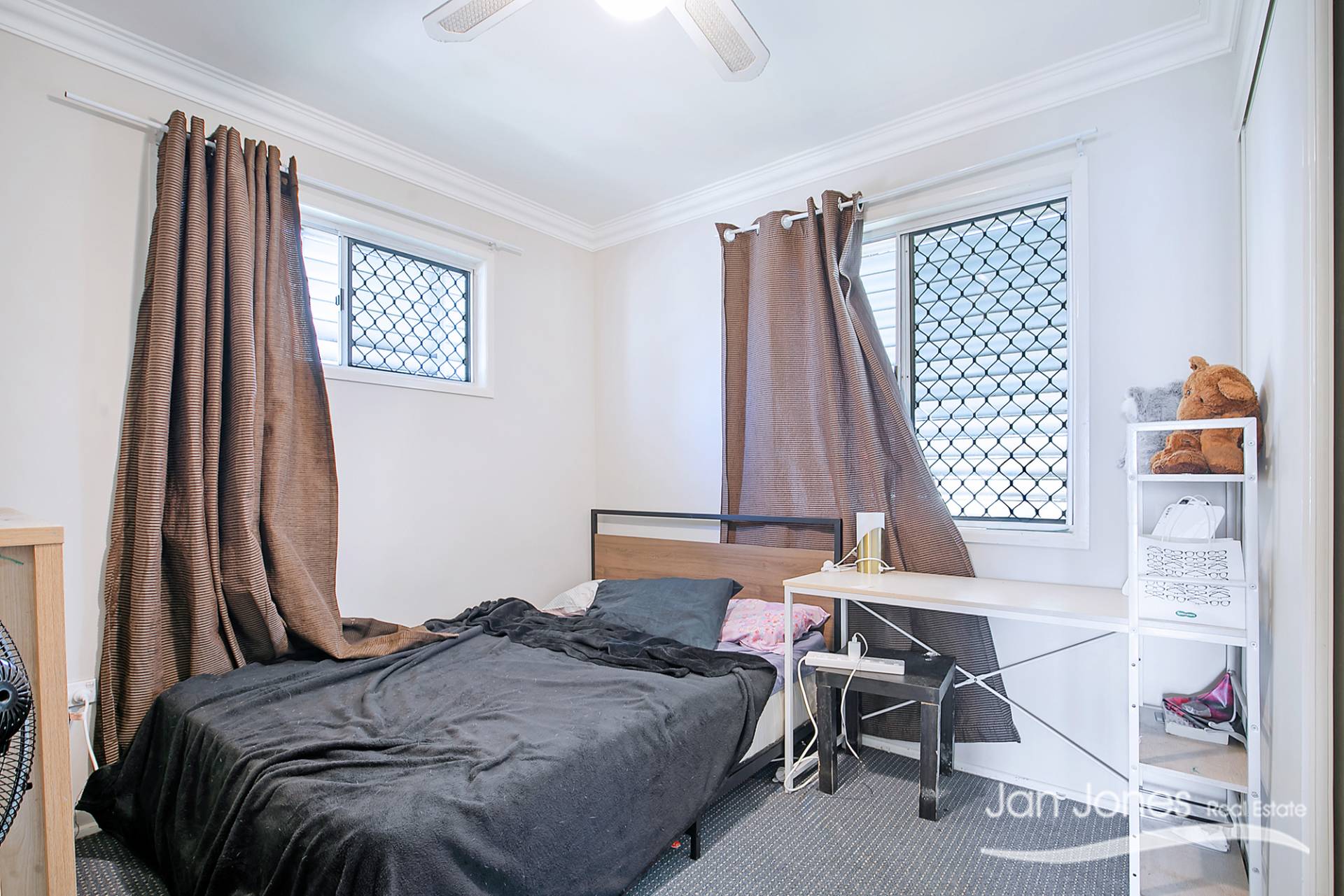 There are 3 bedrooms all of good size upstairs with 2 having built-in wardrobes, 1 with air con and all with ceiling fans and located at the rear of the property.