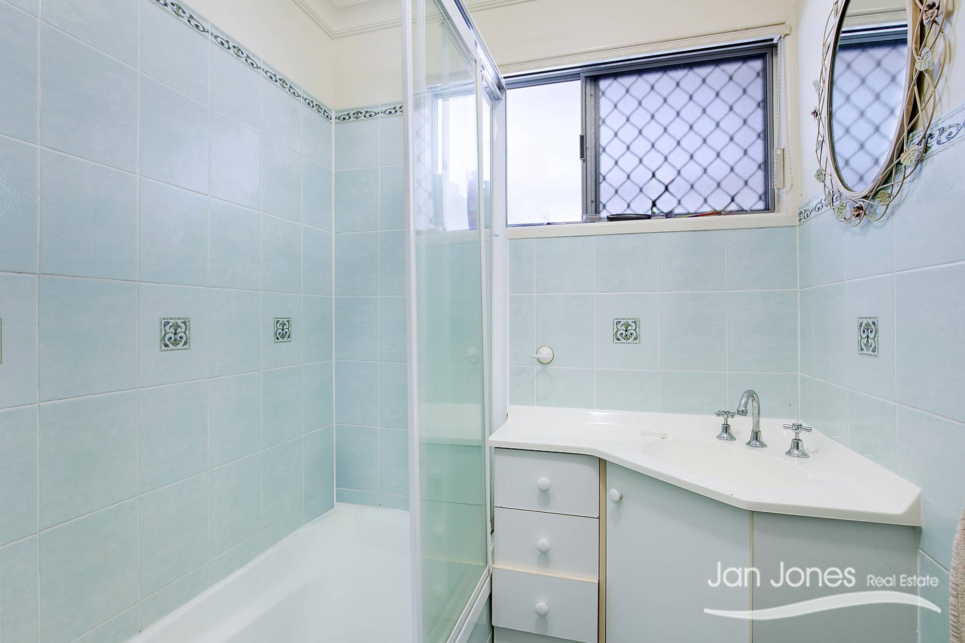 The main bathroom offers a practical vanity with a shower over bath combination while having the toilet separate for added privacy convenience.