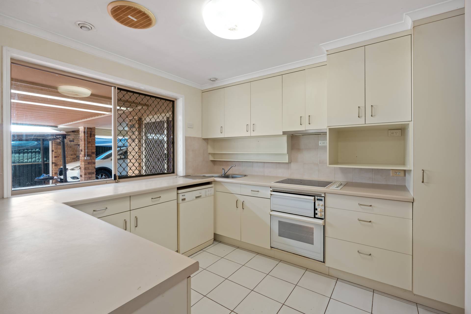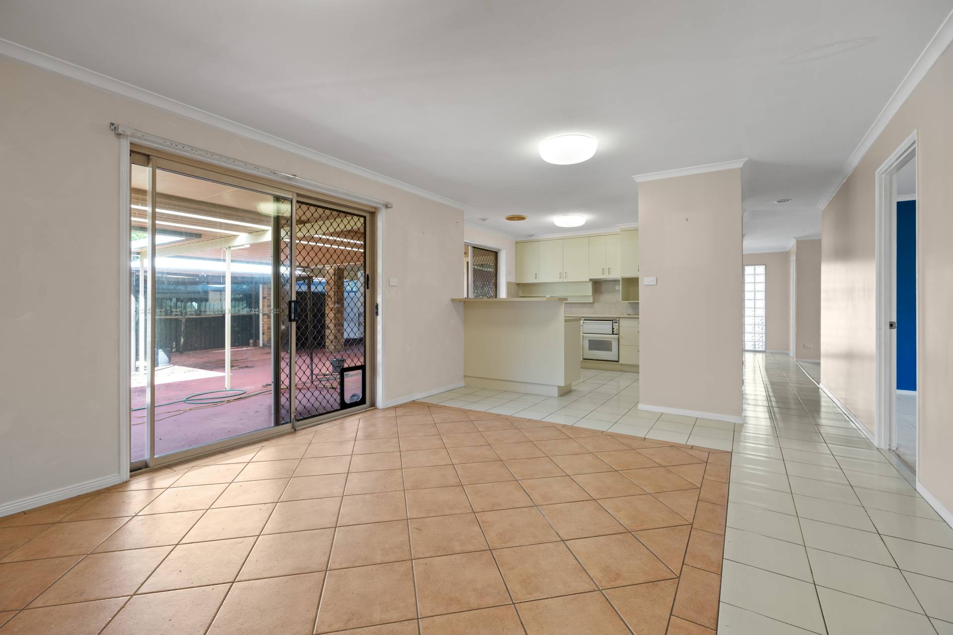 Centrally positioned, the open-plan kitchen offers ample bench space, an electric cooktop and oven, dishwasher, and a convenient breakfast bar. It overlooks a spacious dining area and the main living room, which seamlessly connects to the covered outdoor entertaining area—perfect for relaxed weekends or hosting guests.