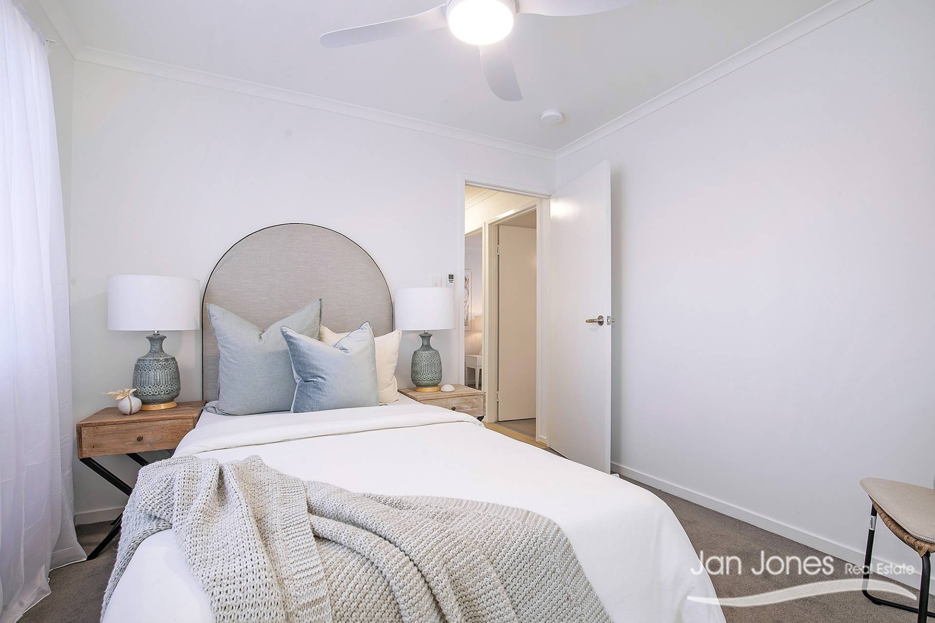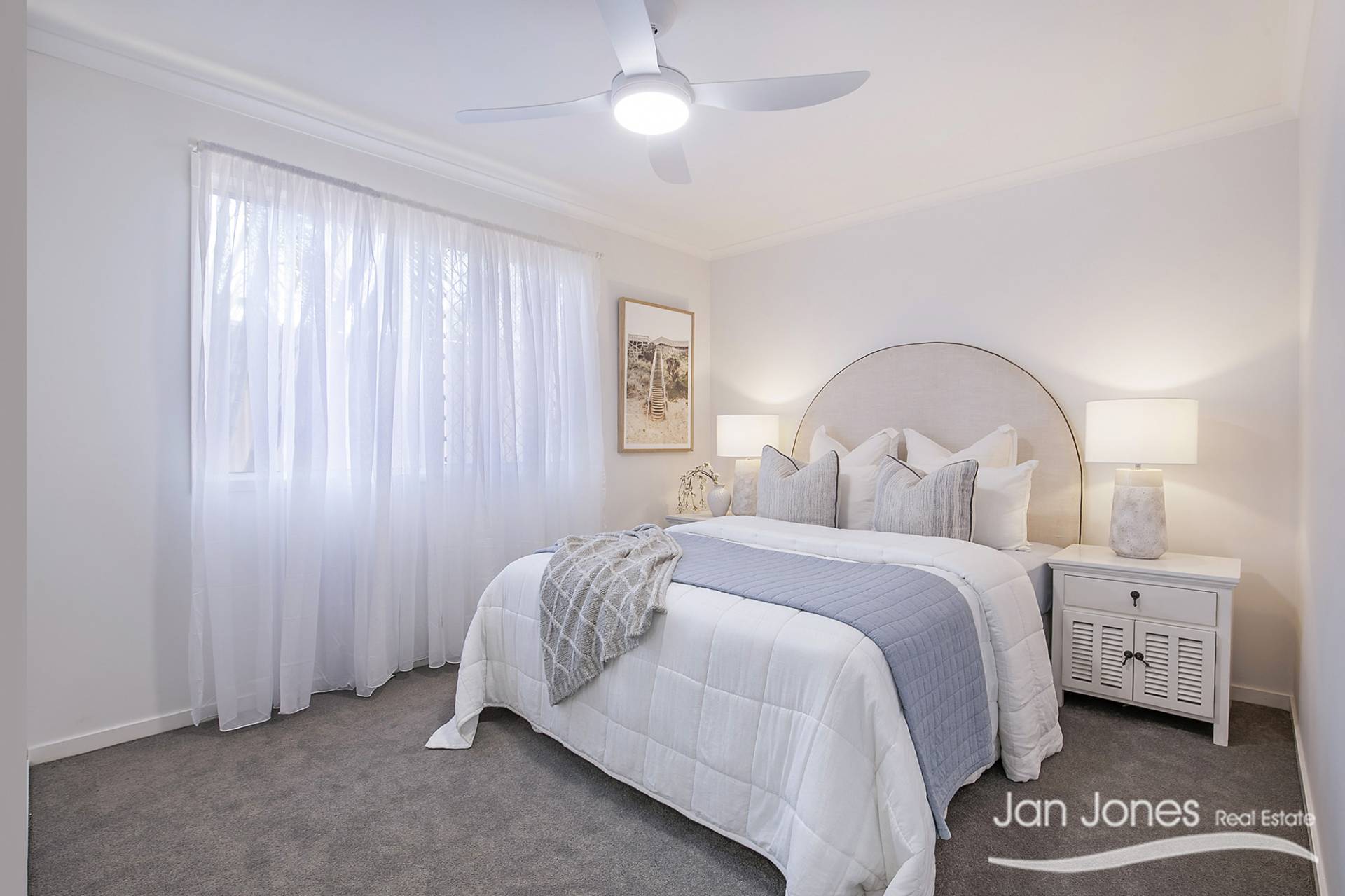 New ceiling fans with dimmable lights in every bedroom for year-round comfort.