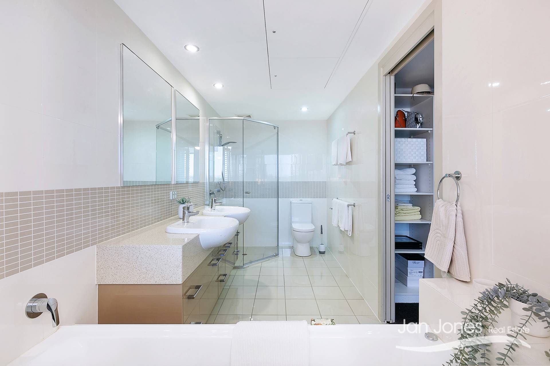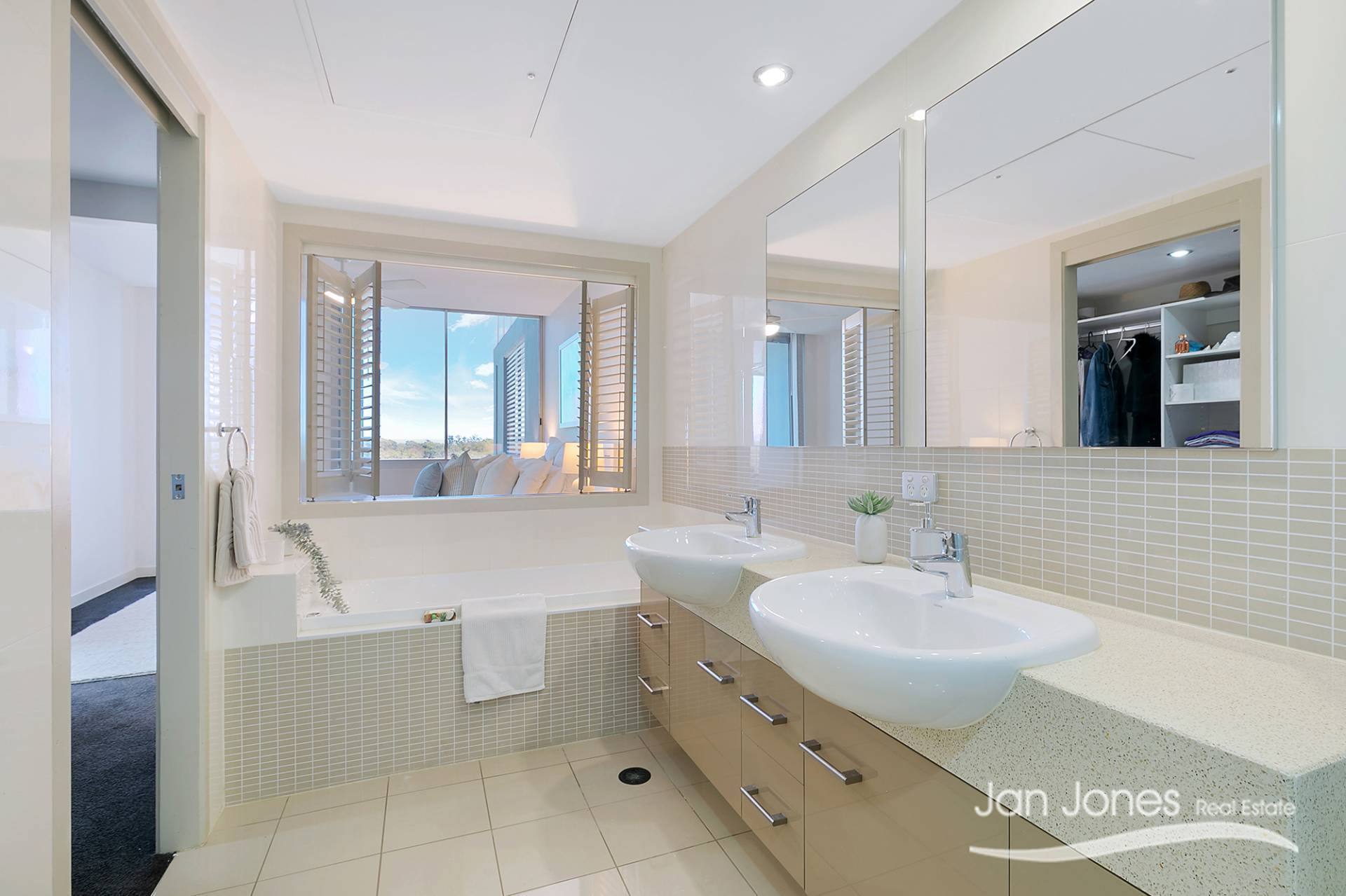 The two additional bedrooms enjoy direct access to a private shared balcony, separate from the main entertaining terrace, where both rooms can enjoy those Moreton Bay breezes and the waterfront.