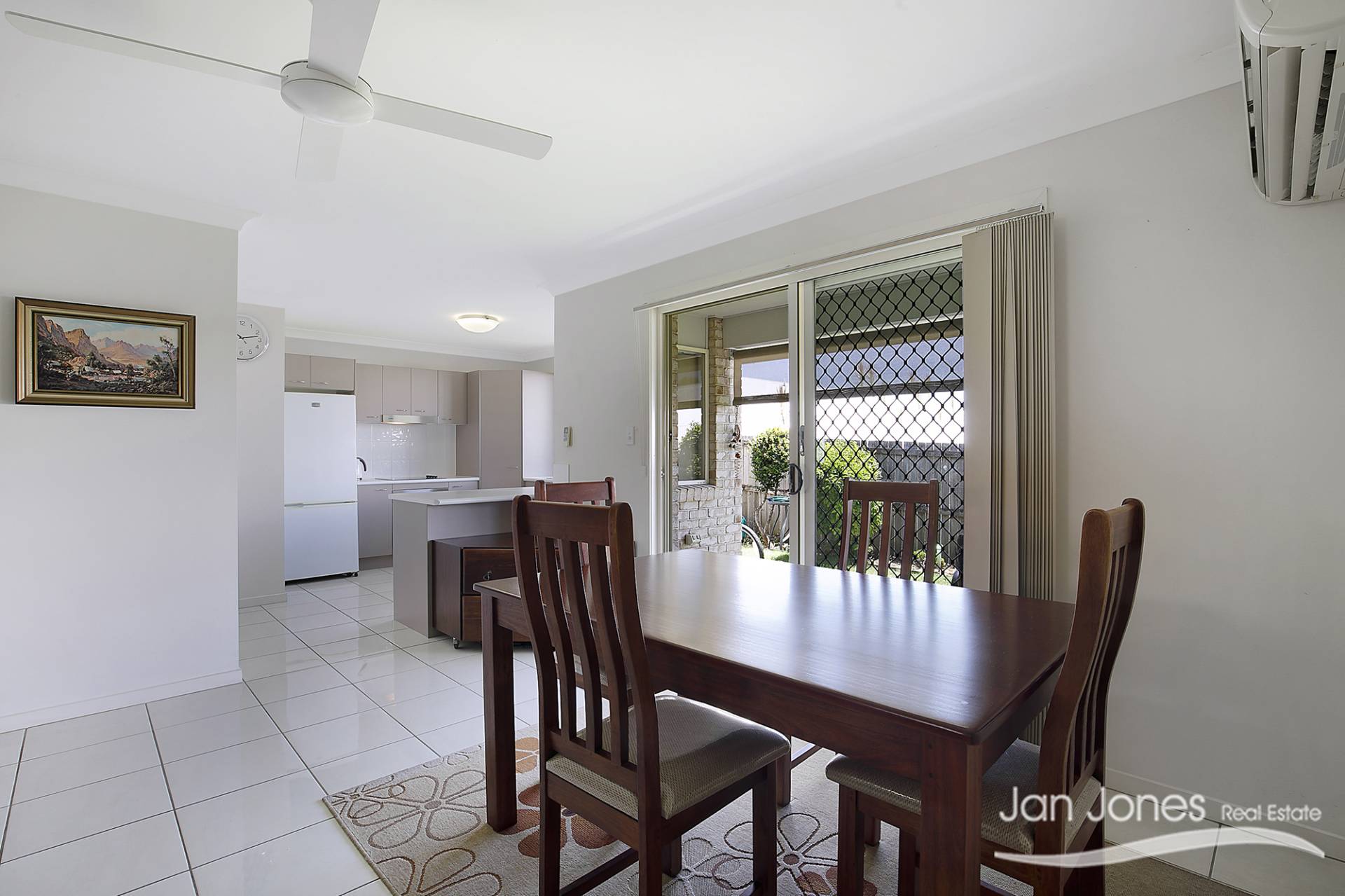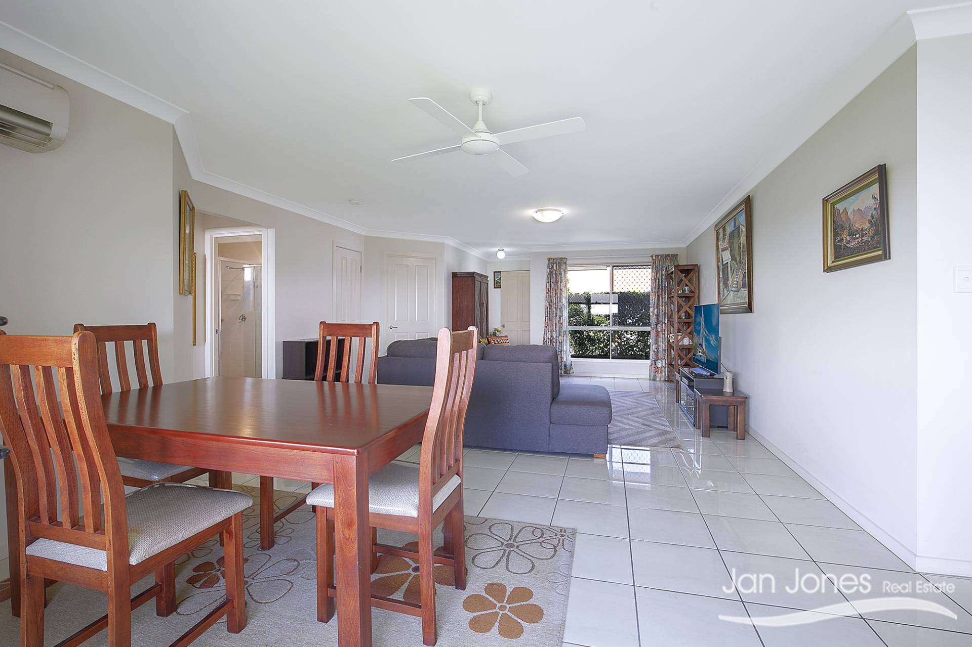 The open plan combined dining and living area has a split system air conditioner making it comfortable all year through.