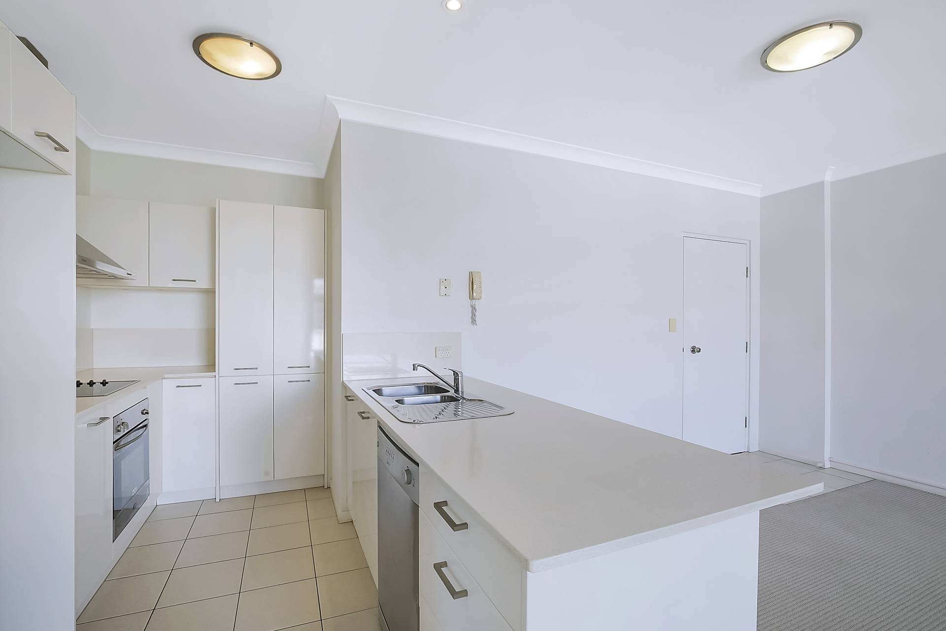 - Bright modern kitchen with stone benchtops, pantry and dishwasher