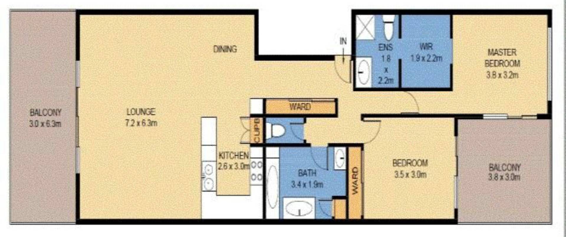 There are two double bedrooms including a main with walk-in wardrobe and ensuite, and a second bathroom with internal laundry, spacious for when your family and friends come to visit. Included in this unit is another private balcony coming off both bedrooms which is a perfect area to relax in.