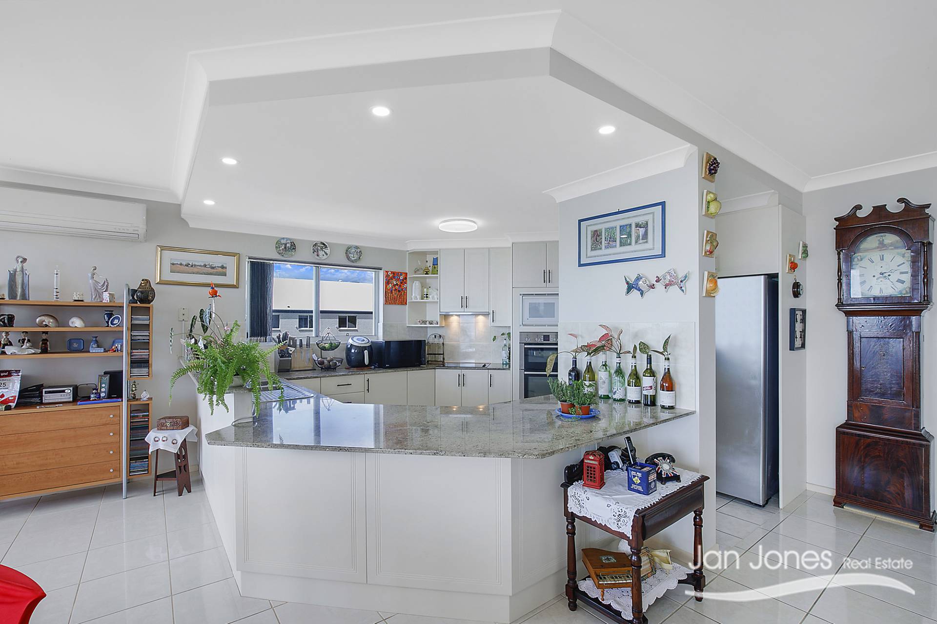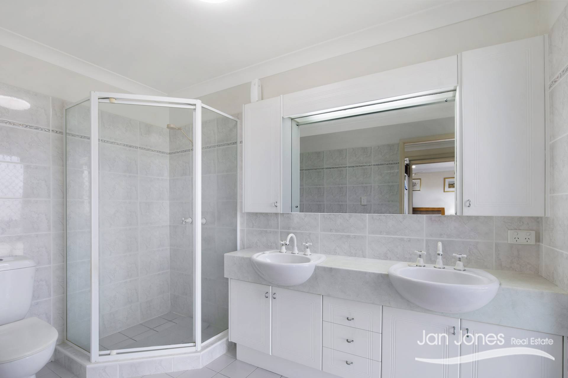 Down the hallway you have the master bedroom with walk in robe and ensuite with double vanities and shower. The second balcony from the master bedroom lets you enjoy those Moreton Bay breezes all year round at night with security screens and ceiling fan.