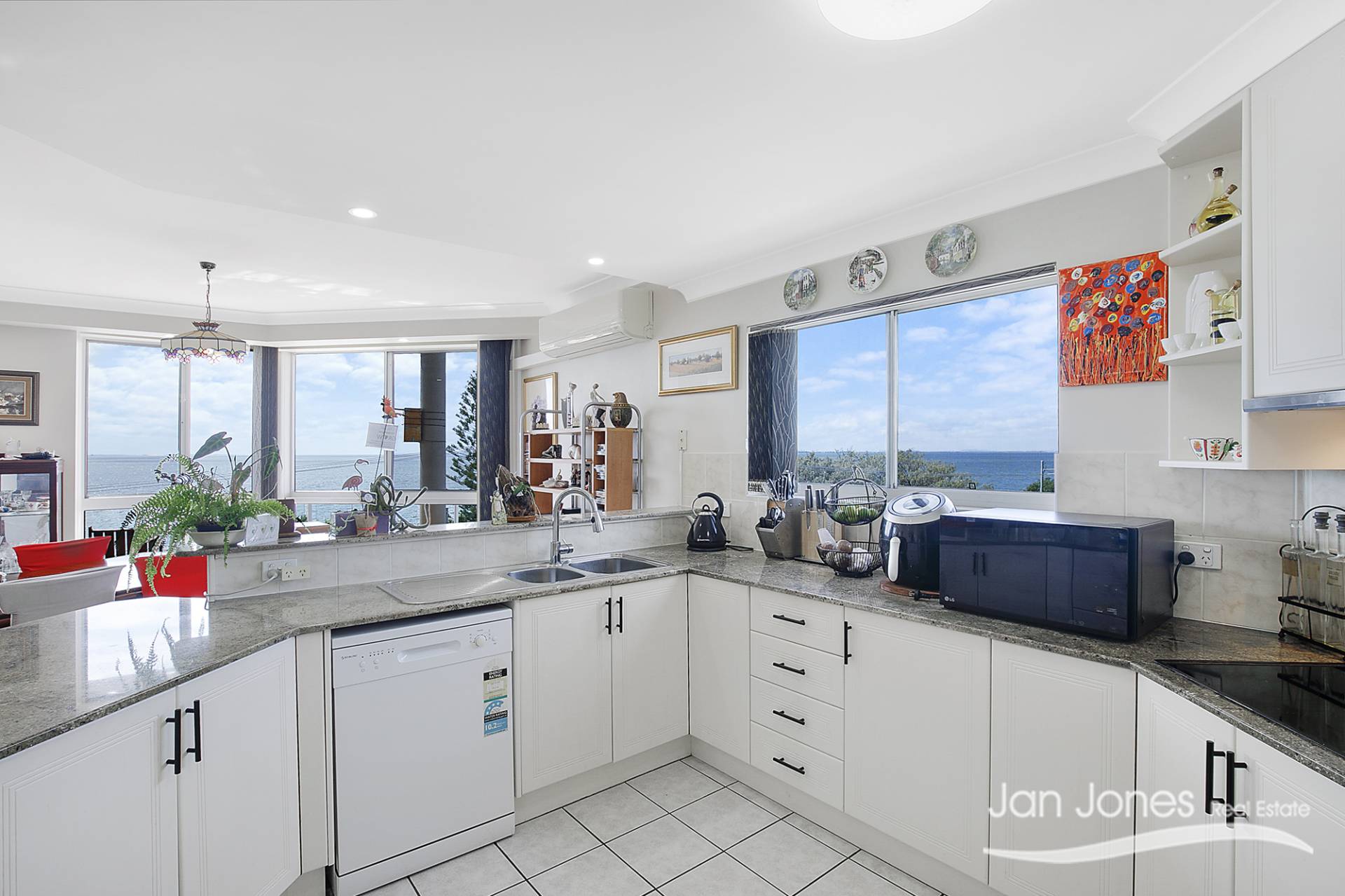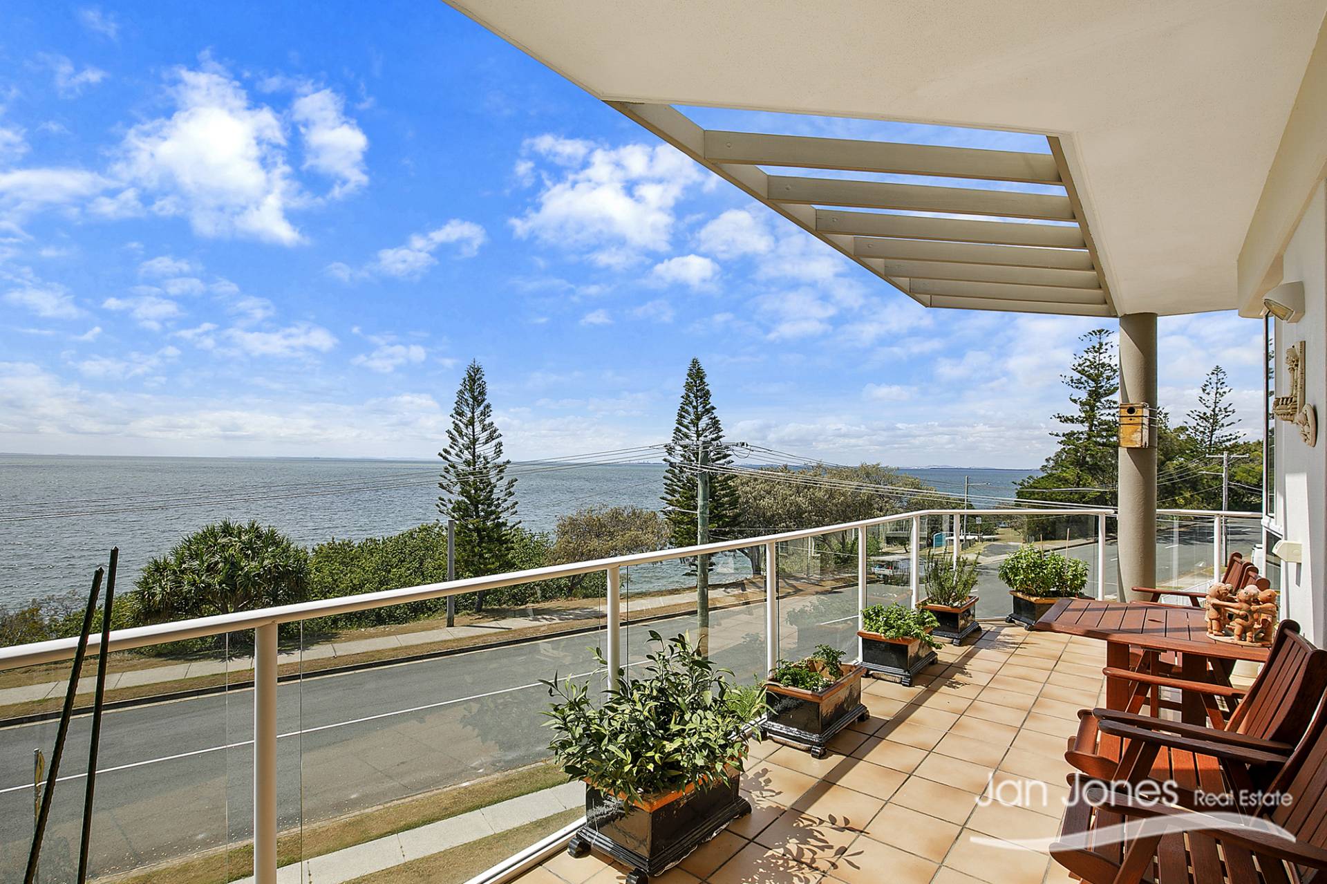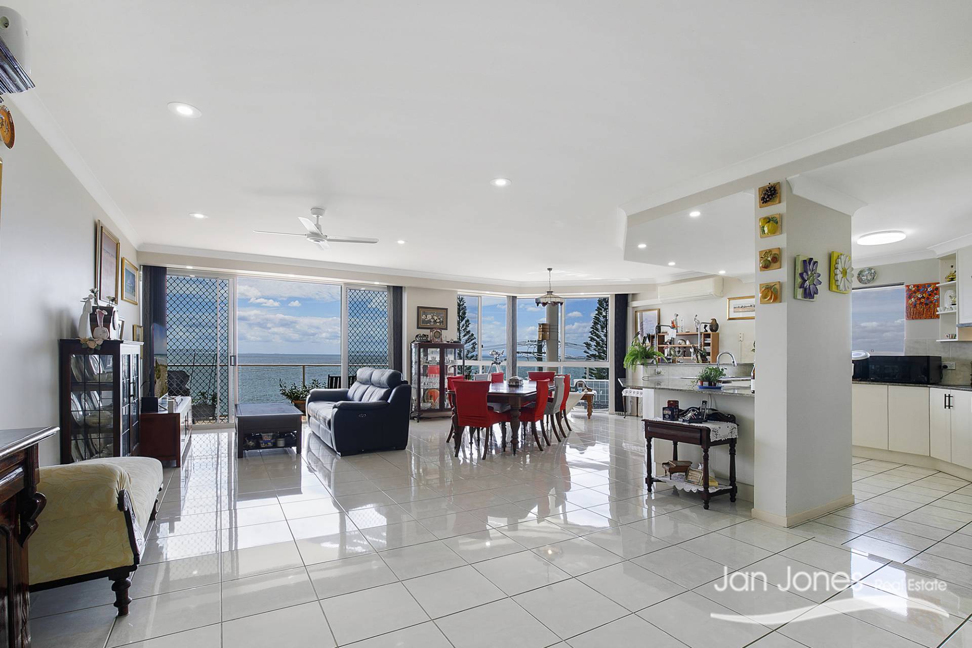 The well thought-out floor plan offers water views from every location in the open plan kitchen, living, dining and entertaining area that flows out to the front verandah taking in spectacular views of Moreton Bay. You will notice that this unit will accommodate the largest of dining tables and still have room for your oversized lounge to relax in and watch the cruise ships go by.